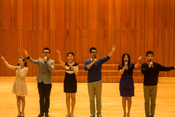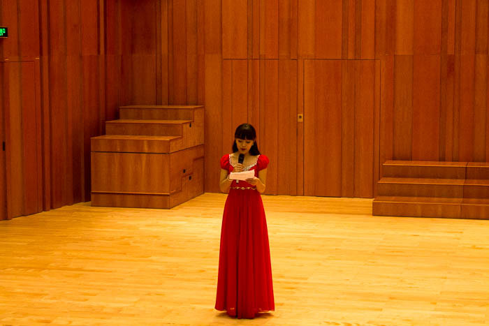 尽管大雨挡住了一些同学前来观看表演的脚步,但是晚上7点半左右,在艺术学院的音乐厅内仍坐了半数左右前来静静聆听这场“面朝大海,春暖花开”的朗诵专场的观众。