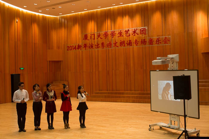 12月16日,厦门的雨下了整整一天,在这样的天气里,厦门大学学生艺术团2014新年演出季之朗诵专场依然如期举行。