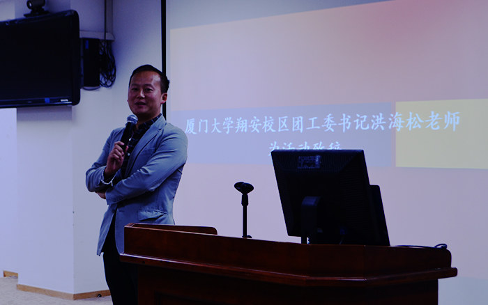 报告会先由厦门大学翔安校区团工委书记洪海松老师致辞。