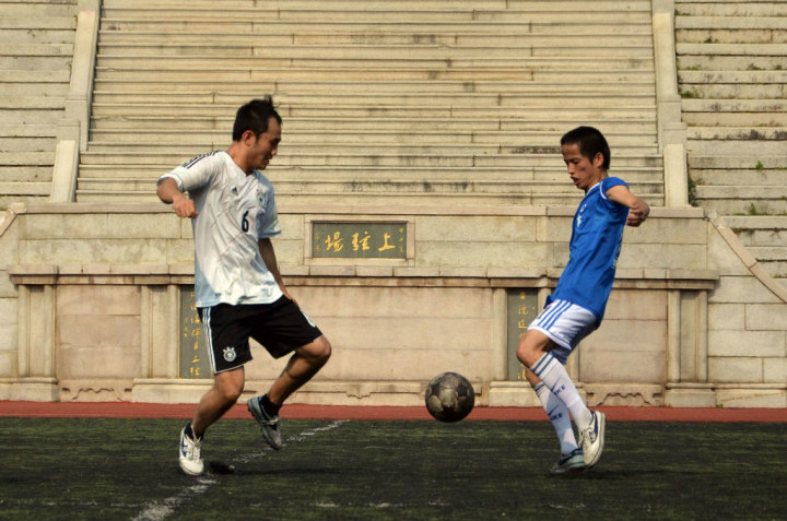 12月9日12:40许,足协杯半决赛第二场角逐在上弦场打响,对阵双方是身穿德国球衣的经济学院(下文简称“经院”)和身着蓝色球衣的公共事务学院(下文简称“公事”)。经院一方阵容上由李鹤鸣顶替了有伤在身的郭运辉,上场打后腰的刘逸凡与宋佳明搭档中后卫,其他位置变化不大。而公事的主力前锋赵煜对阵物机时大腿拉伤,尚未康复,为了能更好的备战校队的大学生足球联赛而高举免战牌,代替上出阵的是24号前锋黄一展,由于本场比赛公事改变了技战术,把赵煜的缺阵对公事进攻端影响降到最低。