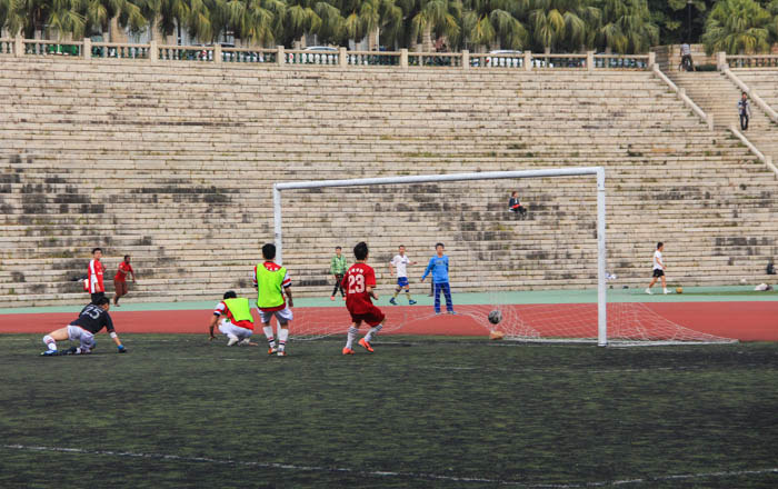 易边再战,第46分钟,何玄水边路传中给在禁区的欧阳湘楠,后者挑射高出横梁。第51分钟,吴伟鹏传给在禁区的欧阳湘楠,后者的低射,门将如布冯般英勇扑出必进之球。三分钟后,蔡参参大禁区外射门直奔球门左上角,门将扑球脱手后被嗅觉灵敏的欧阳湘楠补射,皮球滑过一道美妙的弧线,直奔球门右上角。第56分钟,吴伟鹏送出直塞球,唐勇盘带过人,一脚射门,直吊球门远角,可惜高出球门。第63分钟,管院在前场获得任意球,吴伟鹏开出后,欧阳湘楠在禁区将头球顶飞。