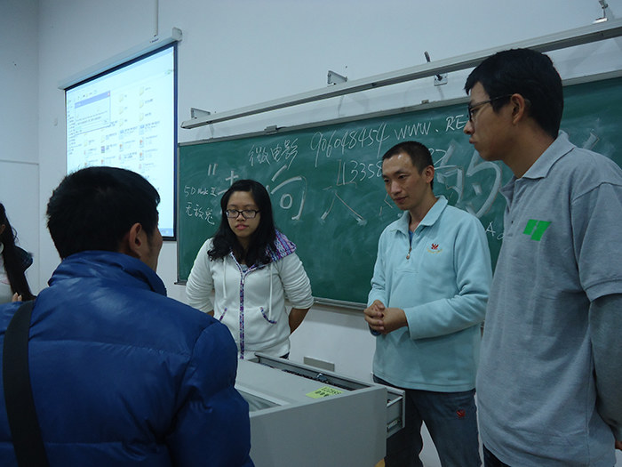 在最后的提问环节时,洪老师应同学们的要求给出了自己的QQ和手机号码,让台下的同学十分感动。更多学员关于音频、视频软件提出的问题,老师也都一一做出回答。在主持人宣布讲座结束后,仍有不少同学围着老师询问。