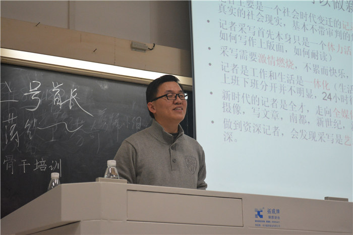 讲座结束后,记者对方志鑫老师进行了简短的采访,据悉,本次讲座之前确定的主题本来是“摄影与摄像”,对此,方志鑫老师原本打算让老生带着新生先做一段视频的拍摄,再由他现场讲评,但是由于参加培训的学生以大一新生居多,而且摄影与摄像的知识也很难在两个小时内讲清楚,所以他便选用了“伟大的公民记者时代的来临”来做本次讲座的主题,而选择这个主题的目的也是为了让拥有新闻理想的大一新生更加努力,从而向专业记者看齐。