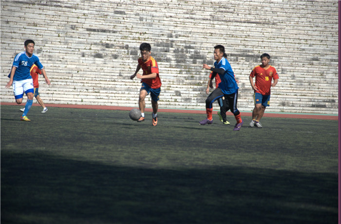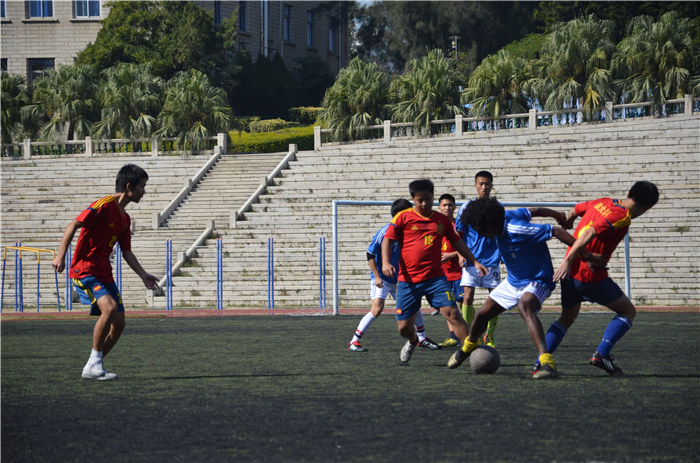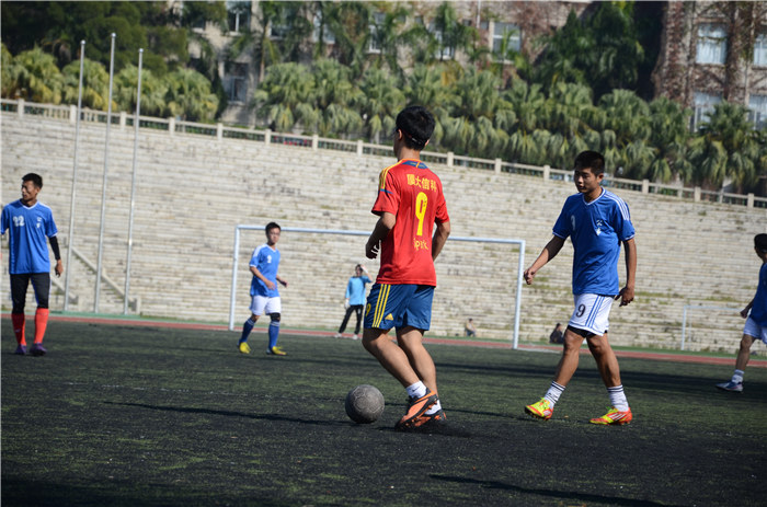 12月2日中午12点30分许,厦门大学八强小组赛乙组比赛在上弦场重燃战火,在由身穿蓝色球衣的公共事务学院(下文简称“公事”)迎战身穿红色球衣的信息科学与技术学院(下文简称“信科”)之间展开。由于此组之前的出现形势并不明朗,信科虽在首场惨败给上届亚军物理机电学院,但在之后的比赛有小胜软件;而实力强大,志在夺冠的公事在第一场比赛被实力不俗的软件逼平,这场比赛赢的一方可获得小组出线的主动权,而输的球队很有可能遗憾出局。所以双方面对对手时都排出了4-2-3-1阵型。上半场公事凭借球队前锋赵煜的梅开二度2:0领先,而下半场双方上演了进球盛宴,最终,公事以7:2战胜坚韧顽强的信科。
