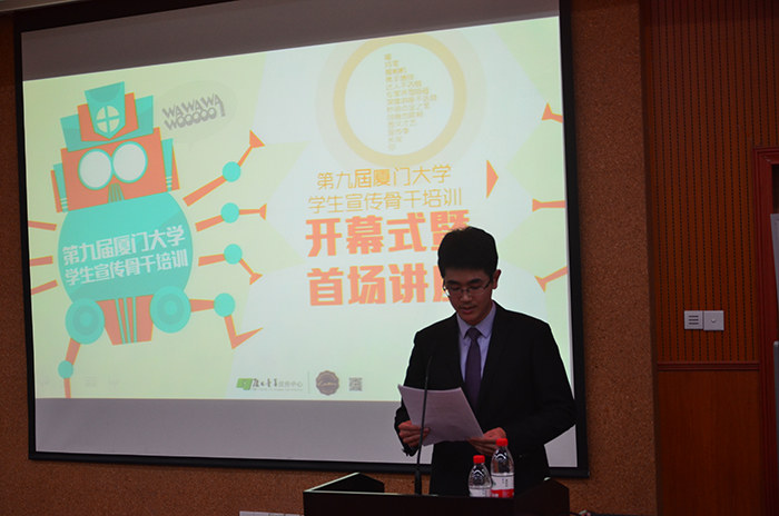 2013年11月30日,第九届厦门大学宣传骨干培训开幕式暨第一场讲座于厦大化学报告厅隆重举行。本场讲座邀请了来自国际4A广告公司--TBWA的创意策略总监蔡国卫莅临演讲。