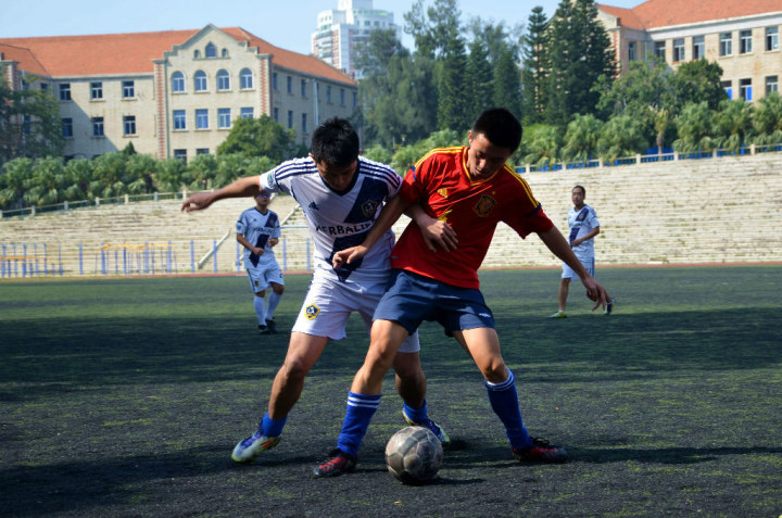 2013年11月21日中午12时30分许,厦门大学足协杯八强赛乙组的一场比赛在上弦场展开争夺。由身穿白色球衣的软件学院(以下简称“软件”)对阵身穿红色球衣的信息科学与技术学院(以下简称“信科”)。凭借着13号刘文煌在下半场的进球,信科1:0小胜软件,赢得了宝贵的3分。