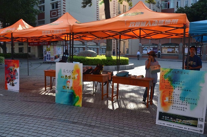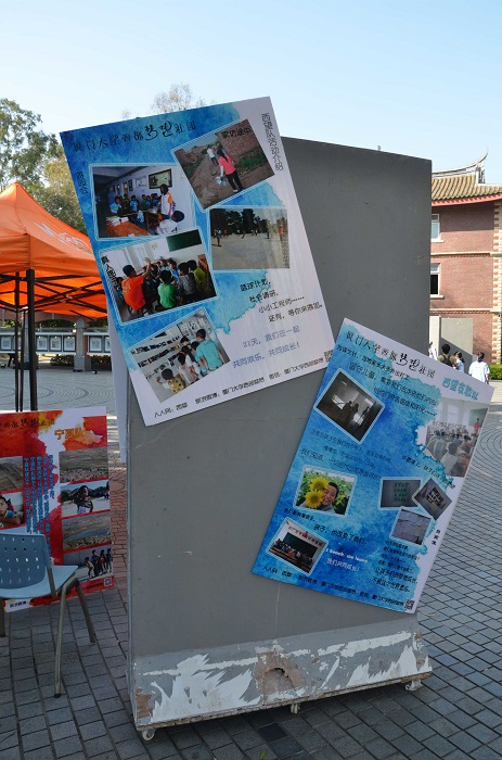 11月17日,由厦门大学西部梦想社团举办的2013西部梦想社团西部巡回图片展在三家村广场及自钦楼展开。该活动共分为今、明两天,今日,共有21张展板在三家村展出,此外,记录了支教活动的视频也在自钦楼内放映。据悉,明天起,西部梦想社团还将奔赴厦门一中、厦门双十中学等高中开展活动。