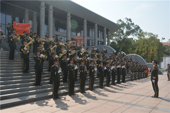 10月27日上午,我校国防生军乐团及打击乐直属连的同学们在恩明楼前进行了一场精彩的表演。