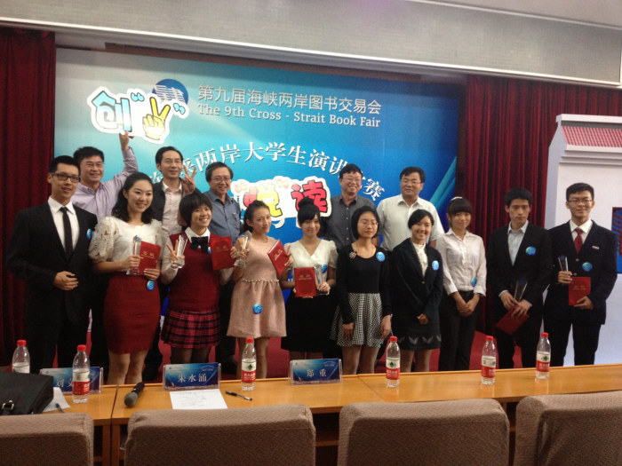 2013年10月24日,在第九届海峡两岸图书交易会的支持下,第七届海峡两岸大学生演讲比赛在厦门大学化学报告厅举行。来自清华大学、浙江大学、厦门大学、台北大学、台湾大学等两岸十所高校的十名大学生围绕着“阅读与创业”这一主题进行了精彩的演讲。