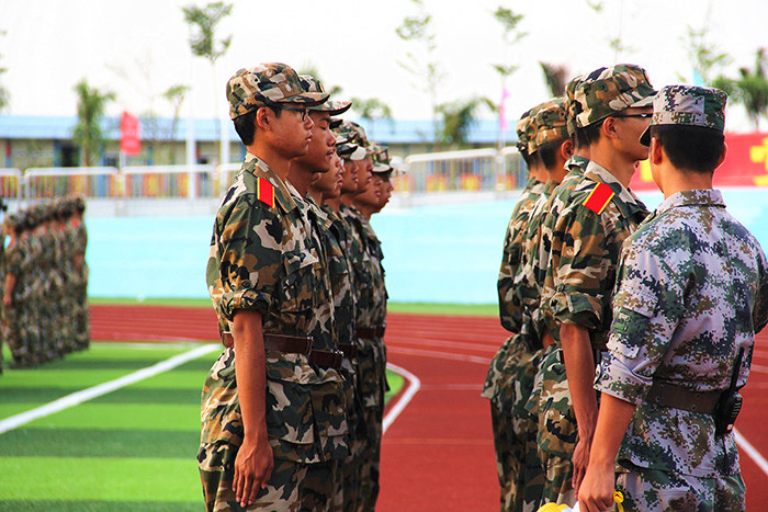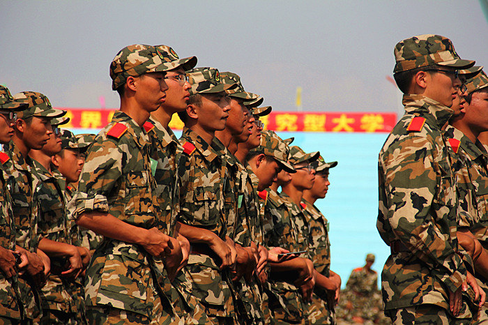 “军姿定型三十分钟!”这是每天训练开始时的必修课,2013级物理与机电学院的陈思宇同学在接受采访时说,“通常都是这样,早中晚的训练都是以军姿定型半小时作为开始。”