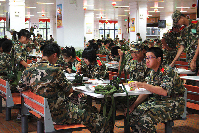 五点五十分洗漱完毕后,大多数同学选择去食堂就餐,为一天的训练积蓄能量。也有一些同学,由于宿舍距训练场路途太远的缘故,选择前一天晚上便买好第二天的早餐,在去训练场的路上边走边吃。