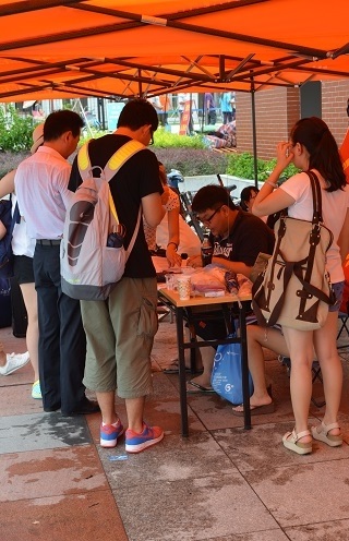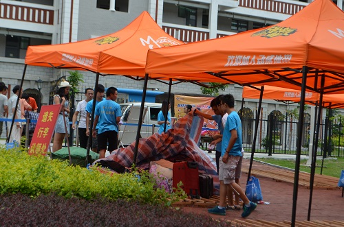 各个学院都在竞丰食堂门口设立了迎新点,校学生会翔安分会和学校后勤也有安排帐篷及工作人员值班。注册点同去年一样,在芙蓉一和芙蓉二的一楼进行。