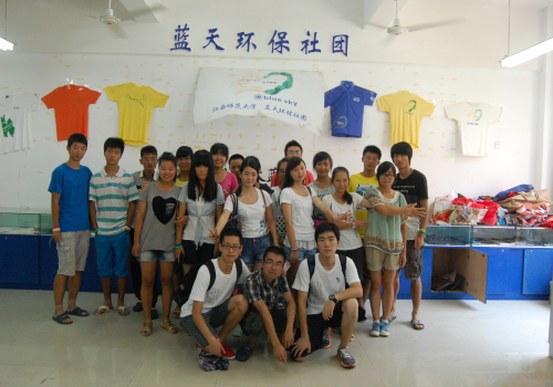 “法蓝西”得到了蓝天环保社团成员的热情接待。在前往社团办公室的途中,社团成员介绍了社团文化与他们最近的工作动态。蓝天环保社团是目前江西省最大的学生社团,以“天更蓝,水更绿,地球更美丽”为口号,长期开展各种形式的环保调研、考察及宣传活动。曾获“全国优秀学生社团”、2005湿地使者长江行动“十佳团队”等荣誉称号,并与厦门大学绿野协会有着密切交流。社团还成立了党支部,“中共蓝天环保社团党支部”几个大字悬于办公室门前,十分耀眼。