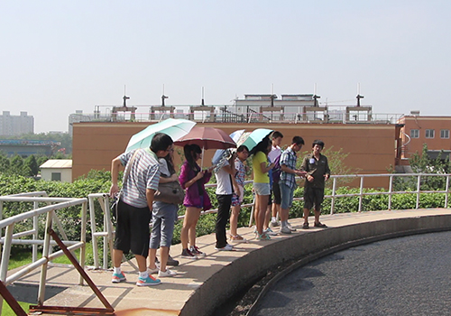实践队来到中国国电北部污水处理厂和沈阳水务集团有限公司二水厂进行参观学习,聆听技术人员的讲解。在污水处理厂中,队员们了解了传统活性污泥法处理污水的一整套工艺,并参观了曝气池、二沉池、供氧系统、污泥排放系统等。在净水厂中,队员们通过聆听技术人员对一整套城市供水设备的讲解,观察、分析水厂各项指标的达标情况,深刻体会到城市供水的现代化与自动化。