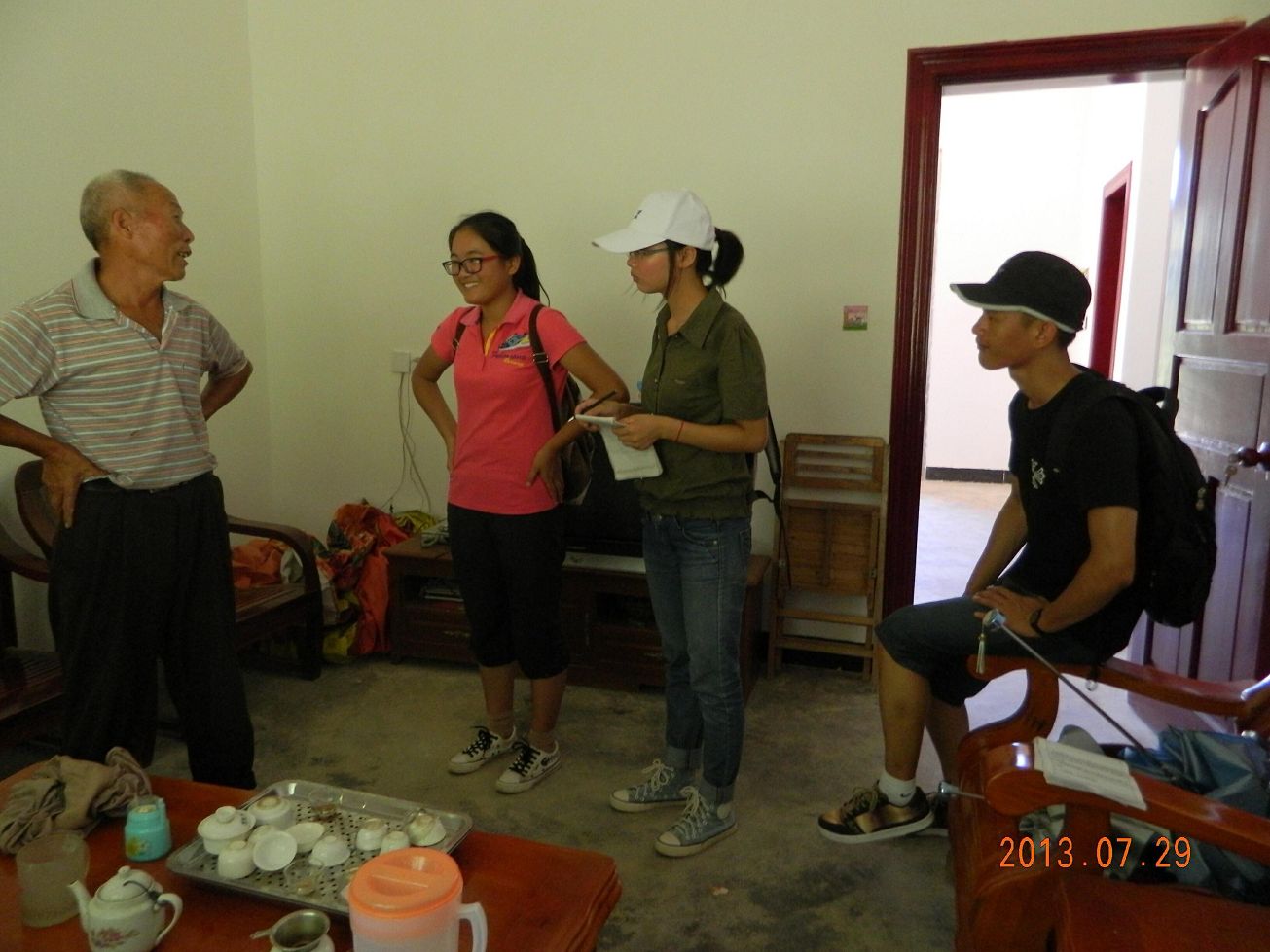 从7月29日开始,他们一行人先走访访谈了东岗村一片的村民关于垃圾处理的一些问题。他们分三队,每队负责不同的区域。队员们访谈的问题主要包括“村民们的垃圾是怎么处理的”、“垃圾是倾倒在何处”、“对环境问题是怎么样看待”等等。其中接受访谈的村民几乎都是将家中的生活垃圾倒入河中。