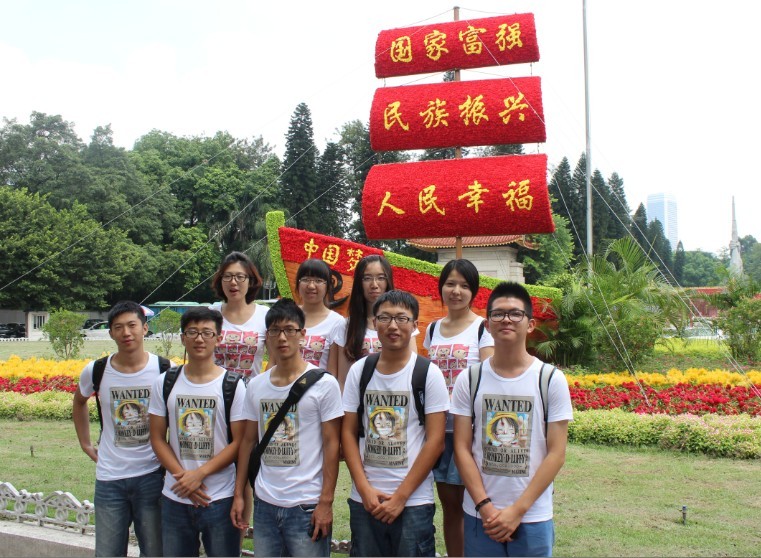 最先映入眼帘的是公园门口草坪上的一座花艺雕塑,一艘迎风破浪的帆船,船上醒目的写着“中国梦”,有着鲜明的时代特点和教育意义,也十分符合我们此次活动的主题。少年强则国强,我们应该成为有理想有抱负的青年,在实现自己梦想的同时,要把社会的,国家的,全民族的“中国梦”视作己任。步入园内,队员们立刻被一种庄严肃穆的气氛所感染。院内绿草如茵,树木参天,主干道笔直宽阔,一直延伸到石阶上的纪念碑,纪念碑上的浮雕栩栩如生,仿佛在向我们讲述着一个个壮烈感人的革命爱国故事。随后队员们看到了一些伟人的题词与悼文,在如画的风景中,愿先烈们安息,精神永存。离开时队员们在门口遇见一位白发苍苍的老人,他坐在轮椅上,由人推着向纪念碑走去。也许他的家人、伙伴在广州起义中英勇牺牲了,也许他也经历过在广州发生的种种革命变迁,也许他想要通过这种方式表达一个老者赤诚的爱国之心,真实的情况我们不得而知,但是我们一定会将老一辈革命者的牺牲奉献精神,爱国主义精神传承下去,在以后的学习生活中,勇往直前,奋力拼搏。