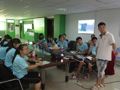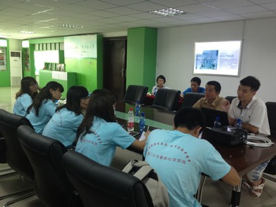 对角美工业区的分布进行了大致了解后,办公室主任曾毅先生向我们展示了绿宝集团的企业宣传片,全面展示了绿宝集团的企业形象、企业文化、市场分布等。播放完毕后,队员就宣传片内容向曾毅先生就关心的问题进行咨询,曾毅先生也给予了耐心的解答。