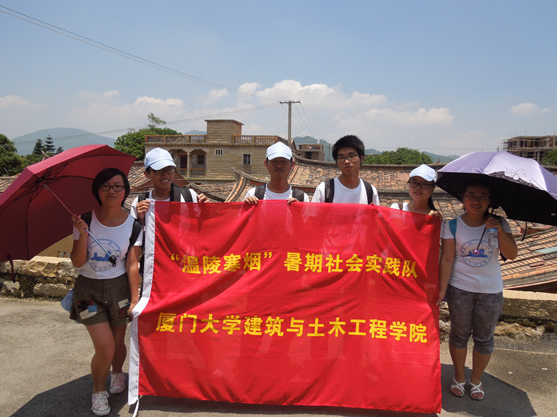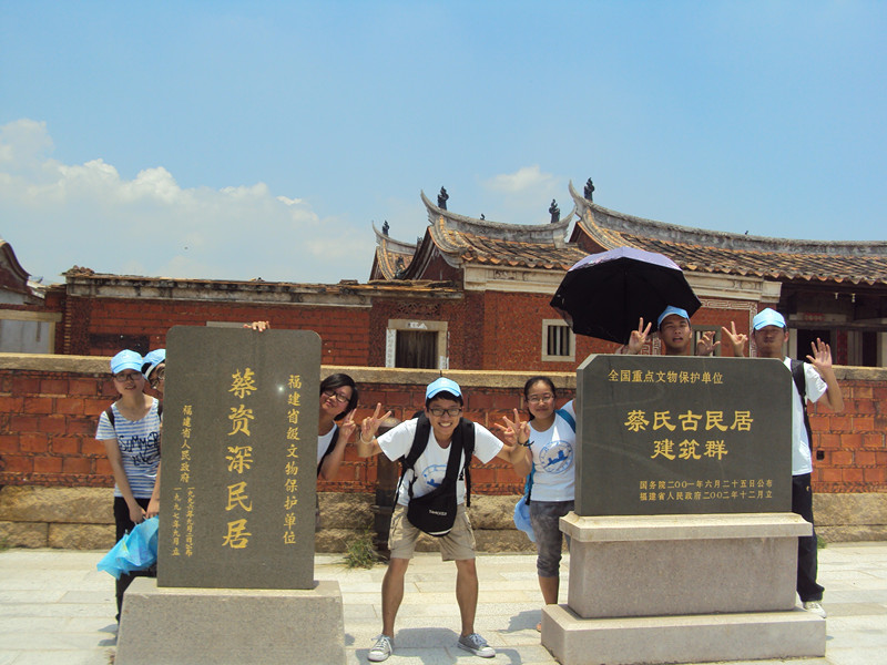 7月23日,实践的第三天,上午9点集合后,队员们便从泉州市辗转至泉州市官桥镇,寻找蔡氏古民居,由于地方偏远,小镇没有车可以抵达,大家都不顾太阳的炙热乘坐摩的去蔡氏古民居。