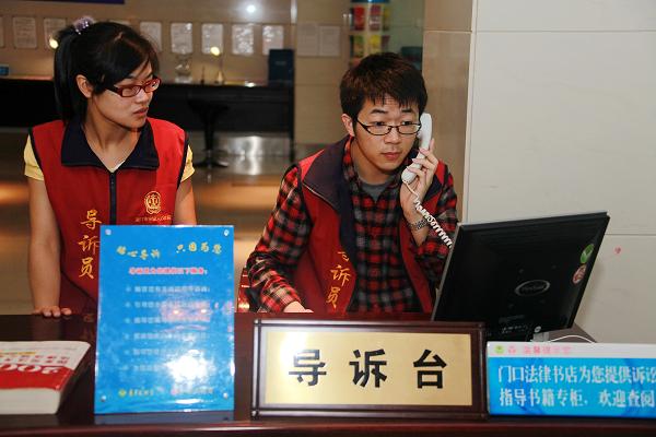 2009年6月,我校法学院与厦门市中级人民法院共建的导诉台正式诞生,近四年来,学院一批又一批优秀的同学陆续参与导诉服务,为当事人提供法律咨询、指导法律文书撰写、帮助查询案件和提供其他帮助累计已达近2万人次。
