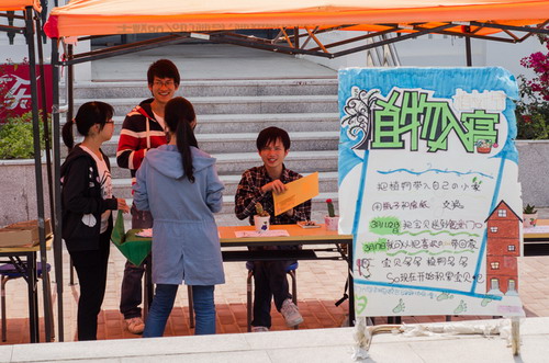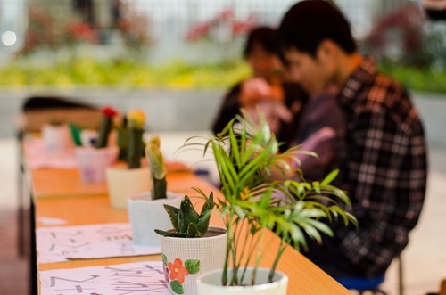 的同学们在桌面上拜访了一些小巧可人、很适宜放在寝室里面的植物,并且为每一种植物取了一个亲切的名字,同时在小盆栽的昵称后面注明其大名,标明价格。小青(仙人球)、城城(不夜城)、秀秀(袖珍椰子)、金金(金手指)、卷卷(十二卷)……这吸引了不少人的驻足留意。对此,绿野协会一位负责此次活动的同学说:“这些植物起的名字赋予了植物‘人’的气息,让带走它们的人觉得自己带走的植物是独特的,并且更能激发起爱护它们的意识。”