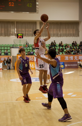 比赛跳球后,厦大在前几次的进攻中先声夺人,6号朱逸聪、22号张胆连续两分命中,厦大率先进入比赛节奏。远道而来的武汉理工仿佛还不适应厦门炎热的天气,开场后手感欠佳,连续的中远投尝试接连不中,只有8号张翌星命中一记三分,而这位射手在本场比赛中也送出了精彩的三分雨。厦大前锋张胆同样出色,他在三分线前一步的位置起步突破,在以一记漂亮的的转身过人后反手上篮得手,搏得满堂采。随后双方的比分交替上涨,而厦大过早的4次犯规也给了武汉理工可趁之机,毫无进攻头绪的武汉理工开始突破内线,造主队的犯规罚篮得分,第一节比赛结束后,厦大以25:14暂时领先。