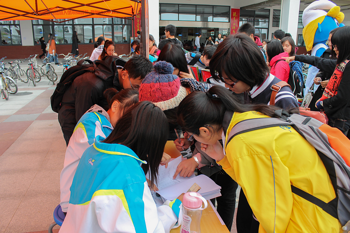“我想寄给在山东大学的同学,可是这么远怎么寄?”一位学生向宣传活动的蔚蓝社志愿者咨询。