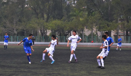 足协杯比赛历时2个月,经过无数崎岖坎坷却仍然一路过关斩将的两支球队——物理与机电工程学院(以下简称“物机”)、公共事务学院(以下简称“公事”)终于会师决赛,比赛场地也从上弦场转战到了演武体育场,两队在淅沥的雨中上演了一场绿茵版的华山论剑。厦门当地时间12月8日上午10点20分许,经过了简短却正式的出场仪式后,足协杯的决赛正式打响。公共事务学院凭借上半场阮建民的入球和比赛终场前造成对手的乌龙,以2:0的比分战胜物理与机电工程学院,在捧起厦门大学首届足协杯奖杯的同时,完成了一年双冠的壮举,这支球队俨然已经是厦大足坛当之无愧的王者。