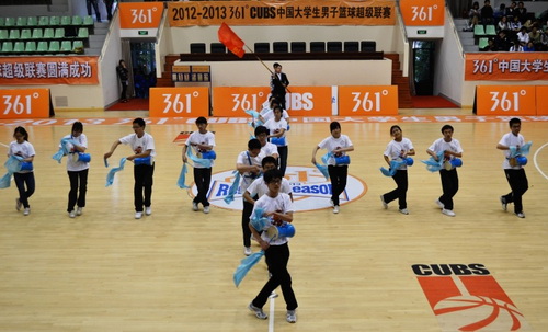 随后,伴着看台上响起的“管理学院,魅力无限;管院雄风,谁与争锋”的口号声,管理学院代表队进场了。一身红衣的队员们开场便便摆出新颖的队形,引人注目,而从整体表演效果上看,管理学院代表队丰富变化的更是队形令人眼花缭乱但其动作却丝毫不乱。他们获得94分的全场最高分真是实至名归。