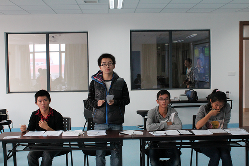 值得一提的是,上午进行的两场比赛是辩赛第一次落户翔安校区,因此无论是场上的选手还是场下的观众都感到很兴奋。第一场比赛中医学院和环境与生态学院就“麻将申遗是否应该得到支持”这一辩题展开激烈讨论。最终正方环境与生态学院发挥更胜一筹获得最后的胜利,正方三辩娄宇菲同学荣膺本场比赛最佳辩手。