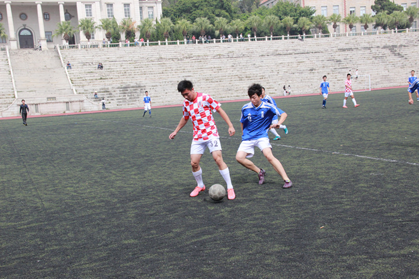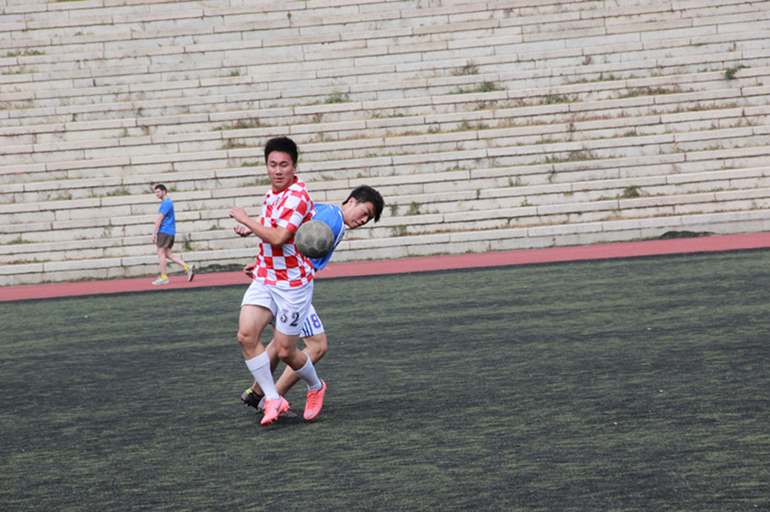 11月8日中午12点半“足协杯”八强赛于上弦场再燃战火,身穿红白球衣的新闻传播学院(下文简称新传)迎战身穿蓝色球衣的公共事务学院(下文简称公事)。最终经过90分钟的激战,公事凭借9号阮建民和12号达吾的双星闪耀,以3:1高奏凯歌,取得八强小组赛开门红。