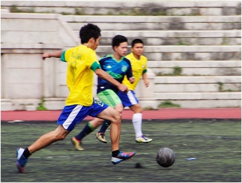 11月6日中午,2012厦门大学足协杯八强赛在厦门大学本部上弦场再赛一场。比赛双方是身穿黄色球衣的信息科学与技术学院足球队(以下简称信科)与身着深蓝色球衣的化学化工学院足球队(以下简称化院)。经过90分钟的激烈角逐,信科下半场发力,以5比1大比分击败化院,取得八强小组赛的开门红。