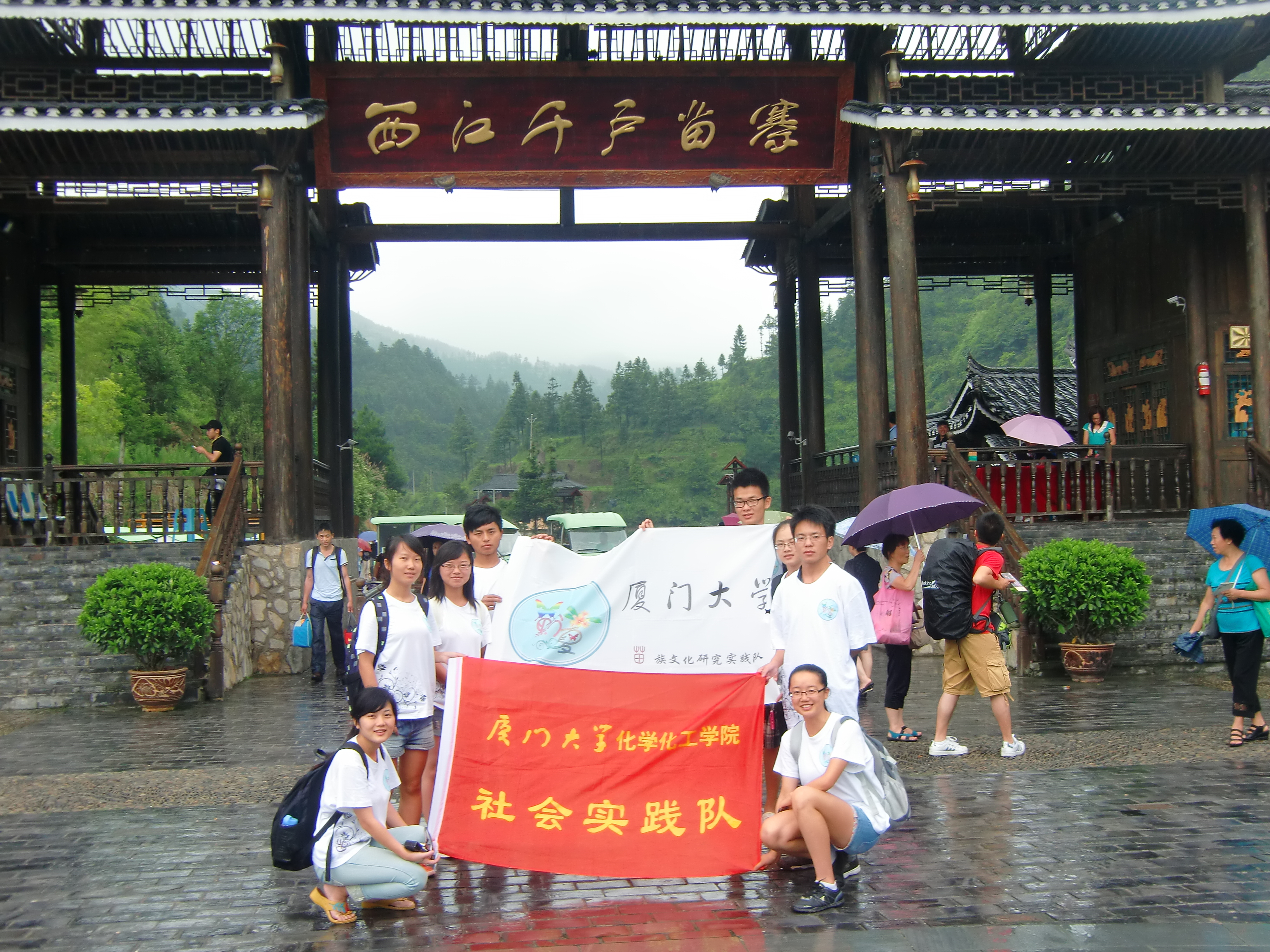 7月25日,在雨雾缭绕之下,“黔夏”实践队于实践的第二站——西江千户苗寨开始了苗族文化的调查,抵达苗寨,氤氲缭绕的西江美景迷住了我们的双眼。