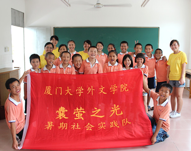 7月25日下午三点,一场由厦门大学外文学院囊萤之光研究生暑期社会实践队英语教学组成员倾力打造的英语达人秀在竹坝小学上演。参演达人们主要是竹坝学校的中小学生,此外还有部分实践队队员。节目涵盖原声动画配音、外文歌曲演唱、手语歌曲演唱及英语话剧表演等。达人秀的主持人为英语教学组的蔡丽婷同学。评委则由实践队其它小组成员担任。出席本次达人秀的嘉宾有外文学院党委副书记郑新风老师、张龙海老师,团委副书记肖盈老师和戴晓燕老师,竹坝学校黄毅煌校长,竹坝小学教务处主任吴志荣老师竹坝小学徐老师。另外,外文学院本科生和研究生两支实践队的全体队员们也观看了此次表演。达人们的演出精彩纷呈,现场欢声笑语不断。