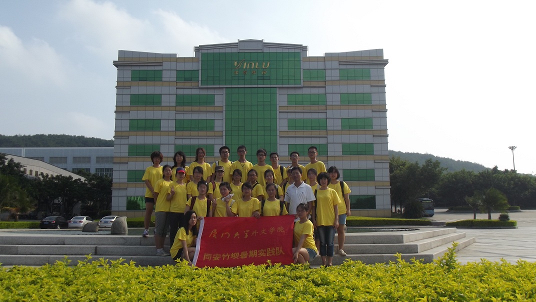 2012年7月27日下午, 在竹坝学校教导处主任吴老师和厦门大学外文学院戴晓燕老师带领下,实践队员于下午三点出发去位于马塘村的银鹭集团。三点半左右实践队员走进银鹭银团,感受名企风采。