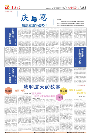 所谓校庆,即以庆之形,行弘扬学术思想之实,以发扬优良传统为经,以开拓学术创新为纬。细数2000年以来厦大的校庆系列学术活动,可以发现,校庆系列的学术活动由之前主要集中在理工科变得文理工科并重。