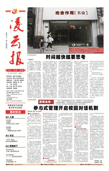 在厦大,类似“和谐校园大家谈”这种推动学生参与校园管理的活动并不鲜见,其中最知名的当属每月定期举行的“校长有约”。这个由校长“点名”启动的“早餐会”从2010年4月正式进入学生视野,目前已经成功举办13期。被邀请的学生与校长共进早餐,不仅能够分享校长的教育理念、学术心得,感受校长的个人魅力,而且可以把学习和生活中遇到的困难或问题,以及对学校工作的意见和建议直接反映给校长。对于校长早餐会上学生提出的那些建议和意见,学校有一个专门的督查机构——厦大办公室督查室监督具体的落实情况,并报校长审核。这其中就包括“图书馆努力增加阅览室座位”的学生建议,学校直接使用校长专项拨付经费20万为学生购置阅览桌165张、椅666张,极大的方便了学生在图书馆的学习。