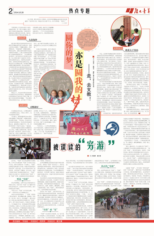 编者按:今年九月份,厦大研究生支教团荣获“特别关注乡村教师支教团体”称号,得到了央视的报道,引起了大家对支教者的广泛关注。他们奉献自己的时间与爱心,走出课堂,走出校园,走向边远地区,散发着自己的光和热。支教者们体验着不一样的青春,谨以此文向准备支教、正在支教以及支教归来者们致敬。
