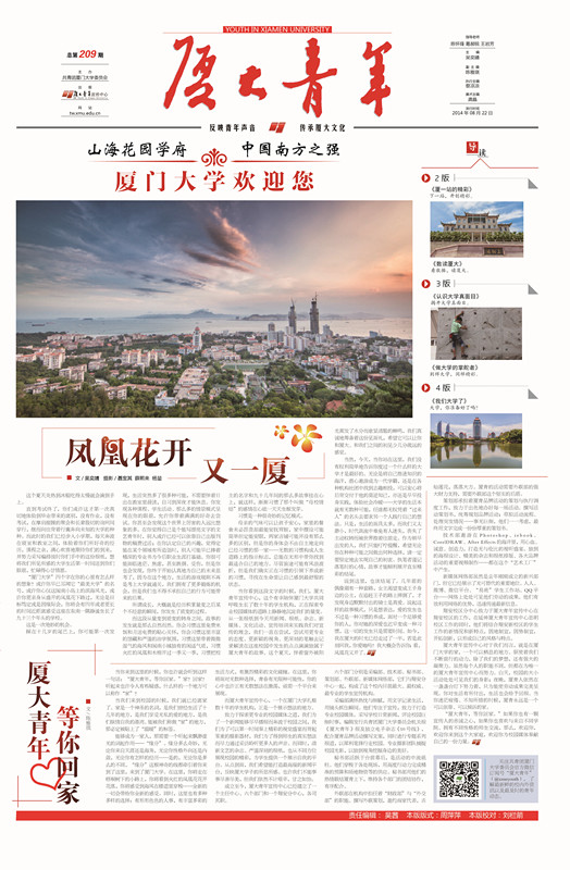 彼时你手捧着这份报纸,今年的凤凰花夸张而绚烂地在你头顶上空绽放,惹得你满眼火红,周围的一切都在无声地对你说:欢迎你,我们的厦大新青年!