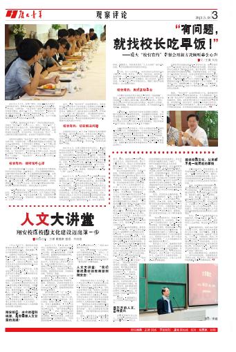三年来,在十八次早餐上,朱崇实校长从同学们口中了解到了小学期、转专业、双学位、校区治安、宿舍环境、食堂后勤……等一大批与学生切身利益相关的问题。与此同时,一大批问题得到了妥善解决。贴心的举动,坦诚的态度,给学子们带去了对学校的信心,增强了他们对母校的爱心,这才是最珍贵的。