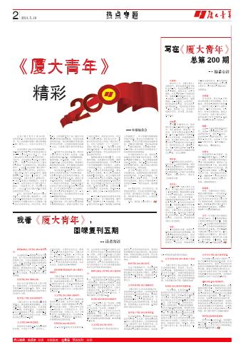 谢曦:这是一个新旧媒体融合的时代,这是一个需要媒体生命力和话语权的时代。我们一直尝试,尝试将每一个承诺付诸实践。200期是一段历史,也是一个开始——与责任有关,与热爱有关,与厦大有关,与青春有关。