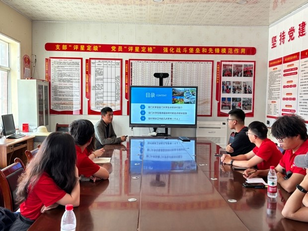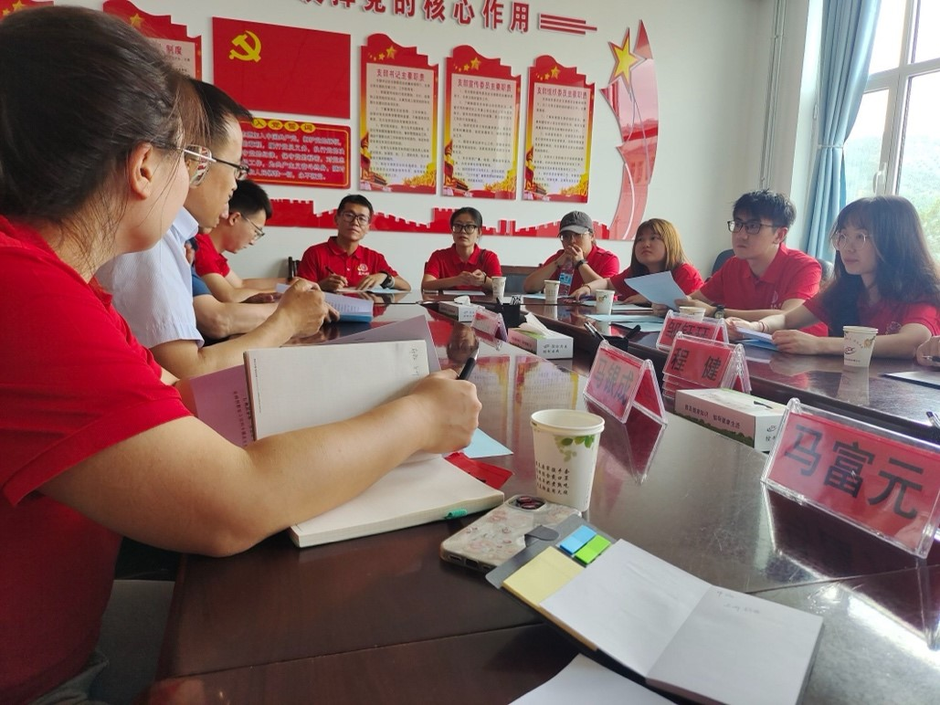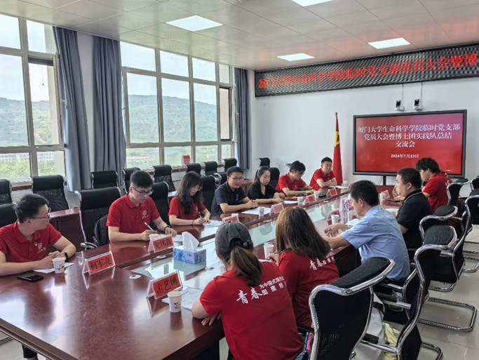 博士团实践队成立了临时党支部,支部成员与隆德县委常委、副县长陈国渊,张树村驻村第一书记戴立欣等学校挂职干部和学院党委书记马进龙、办公室党支部书记吴佳蓓等老师开展座谈交流。队员们就此次调研情况进行了总结和汇报,并分享了实践的收获和感想。陈国渊表示,此次生命科学学院到隆德县开展支部共建和社会实践,对隆德县带来了实质性的帮助,隆德县将持续为校地合作提供保障和支持。马进龙表示,生命科学学院将坚持以党建引领校地深度合作,进一步发挥学院在科学研究、人才培养等方面的优势和资源辐射作用,结合隆德县的实际情况探索实践更多合作路径,为乡村振兴的校地合作贡献生科智慧。