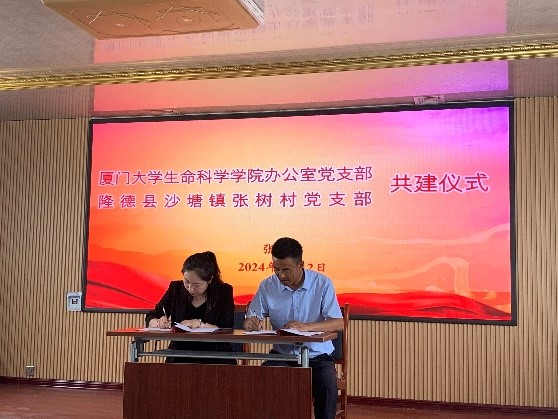 党支部结对共建,探索发展新方式。生命科学学院办公室党支部与隆德县沙塘镇张树村党支部的共建仪式在张树村举办。办公室党支部书记吴佳蓓和张树村村支书、村委会主任张建龙分别作为支部代表签订了共建协议,旨在通过加强校地党组织共建,进一步促进合作深化、资源共享和协同发展,以党建工作引领乡村振兴。