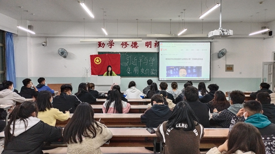 新疆财经大学各团支部在校团委的组织下,采取线上线下相结合的方式开展主题团日活动,研读学习《习近平与大学生朋友们》系列文章。新疆财经大学团委供图