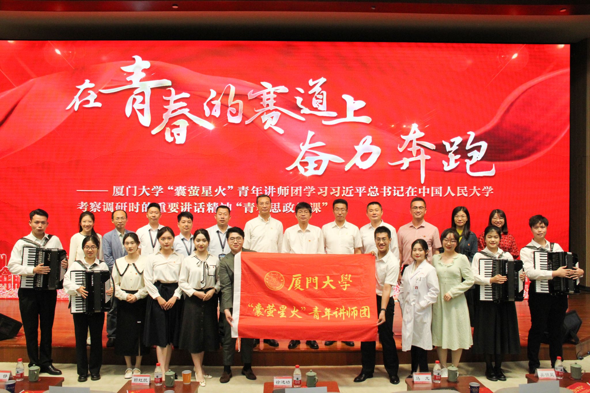 在中国共青团成立100周年之际,5月5日下午,以“在青春的赛道上奋力奔跑”为主题的厦大青年学习习近平总书记在中国人民大学考察调研时的重要讲话精神青春思政课在翔安校区德旺图书馆一号报告厅开讲。来自厦门大学“囊萤星火青年讲师团”的7名成员,立足学科专业特色和自身学习工作经历,依次讲述他们的青春奋斗故事。