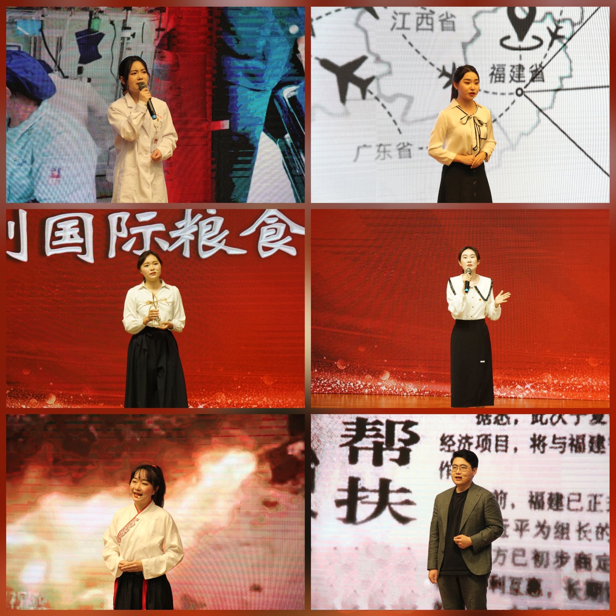 在第二小节“传承”思政课上,人文学院2021级硕士研究生冯巧梅首先抛出了我们应该如何向世界讲好中国故事的提问,在几段故事的光影交织中,找到了破题之钥——“用脚步丈量祖国大地,用眼睛发现中国精神,用耳朵倾听人民呼声,用内心感应时代脉搏,中国青年是讲述中国故事、传播中华优秀文化最重要的生力军。”来自生命科学学院的2020级硕士研究生潘月涵手执一捧稻穗,将我国2021年迎来“十八连丰”的背后,一代代“袁隆平们”为保障中国粮食安全拼搏前行的故事娓娓道来。“作为一名生科专业学子,我的人生目标就是要在梦想的稻田里,成为袁隆平那样的人,延续水稻人朴素、殷实且不乏浪漫的梦。”