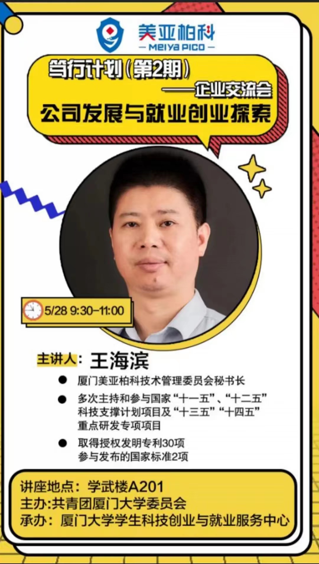 聚焦大学生就业创业这一核心问题,5月28日上午,厦门大学“笃行计划”——企业家座谈会在学武楼A202举行。本次讲座邀请厦门市美亚柏科技术管理委员会秘书长王海滨先生为同学们解答企业运行和就业求职方面的疑惑。
