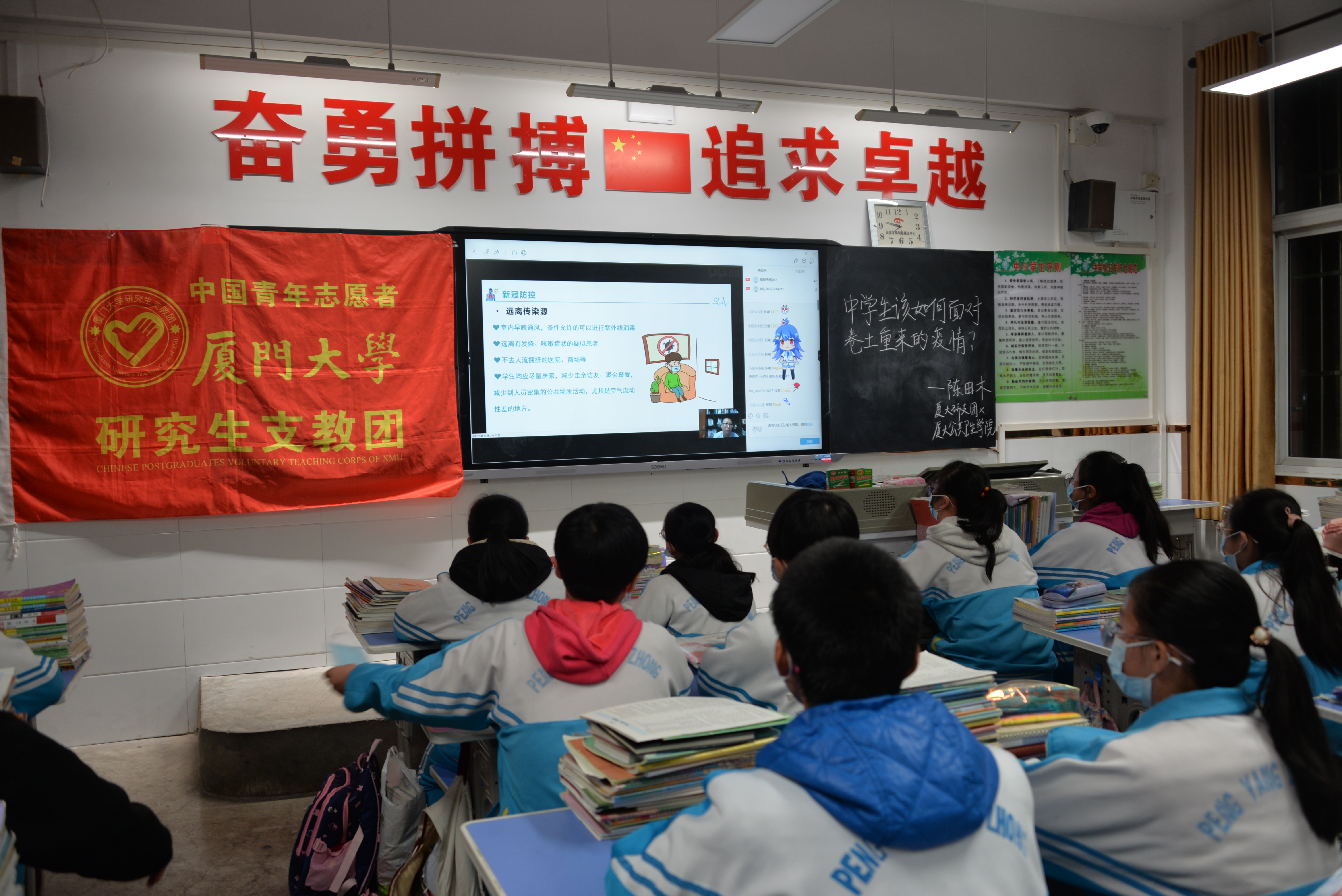 11月7日晚,在厦门大学研究生支教团的支教所在地宁夏隆德县、海原县和彭阳县,9700多名中小学生正在同上一堂课:来自厦门大学公共卫生学院的陈田木副教授通过云端平台,从南国海滨的花园学府跨越2500公里,为宁夏师生带来了一堂别开生面的疫情防控科普讲座。