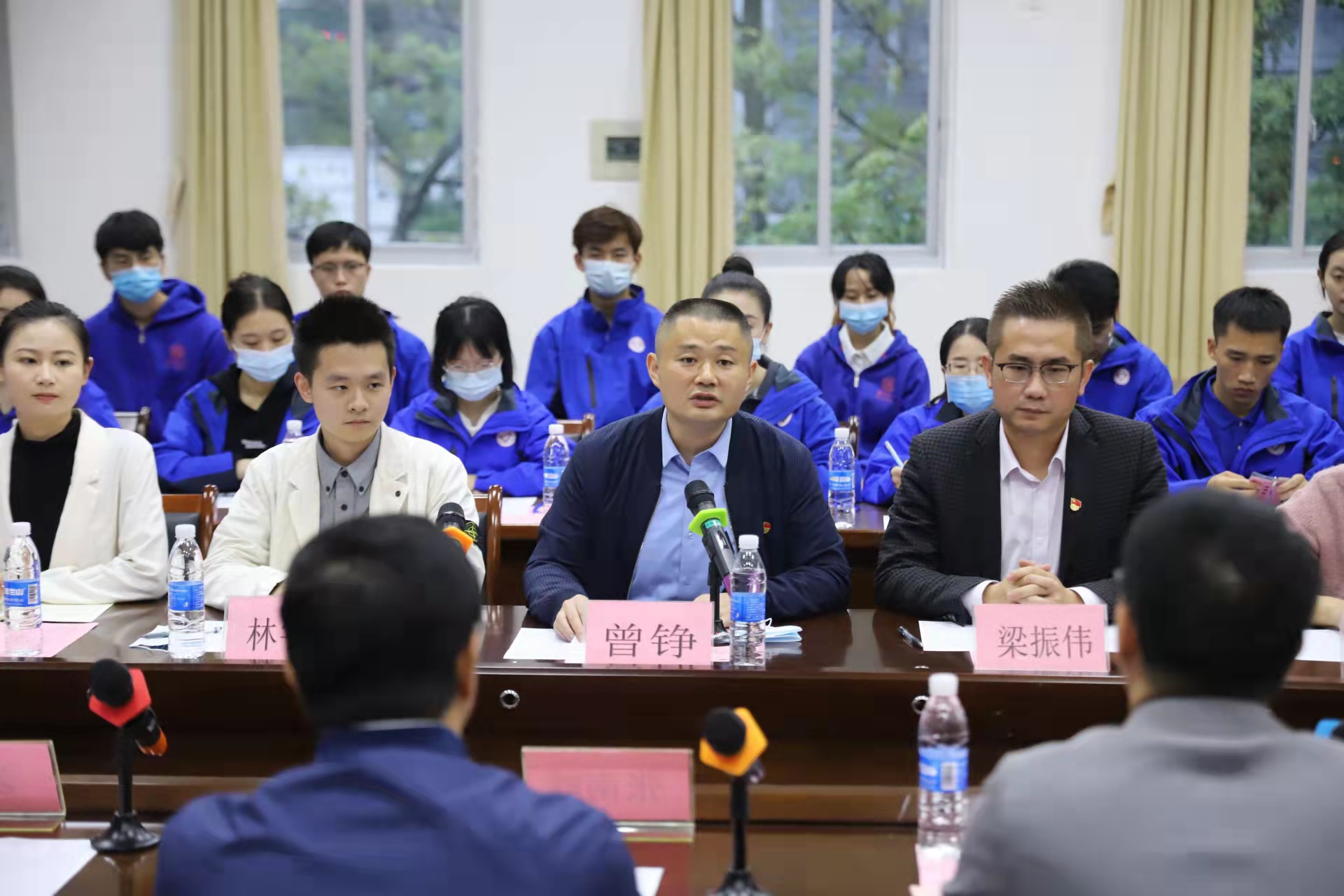 曾铮对厦门一中给予的大力支持表示感谢,并介绍了厦门大学研究生支教团的基本情况。他指出, 23年来,已有323名厦大支教队员在宁夏“西海固”接力教育扶贫,逐步形成了“以基础教学为根本、以素质教育为拓展、以爱心助学为品牌”的工作模式,在脱贫攻坚主战场上以立德树人践行支教初心。今年9月1日,厦门大学研究生支教团登上央视《开学第一课》舞台,向全国人民分享“志智双扶”的接力故事,引起了强烈社会反响。曾铮勉励支教团队员们要接好“接力棒”,跑好“接力赛”,在一中实习期间多看、多听、多想、多问,努力转换角色,提升教学技能,为高质量完成明年的支教任务打好基础。