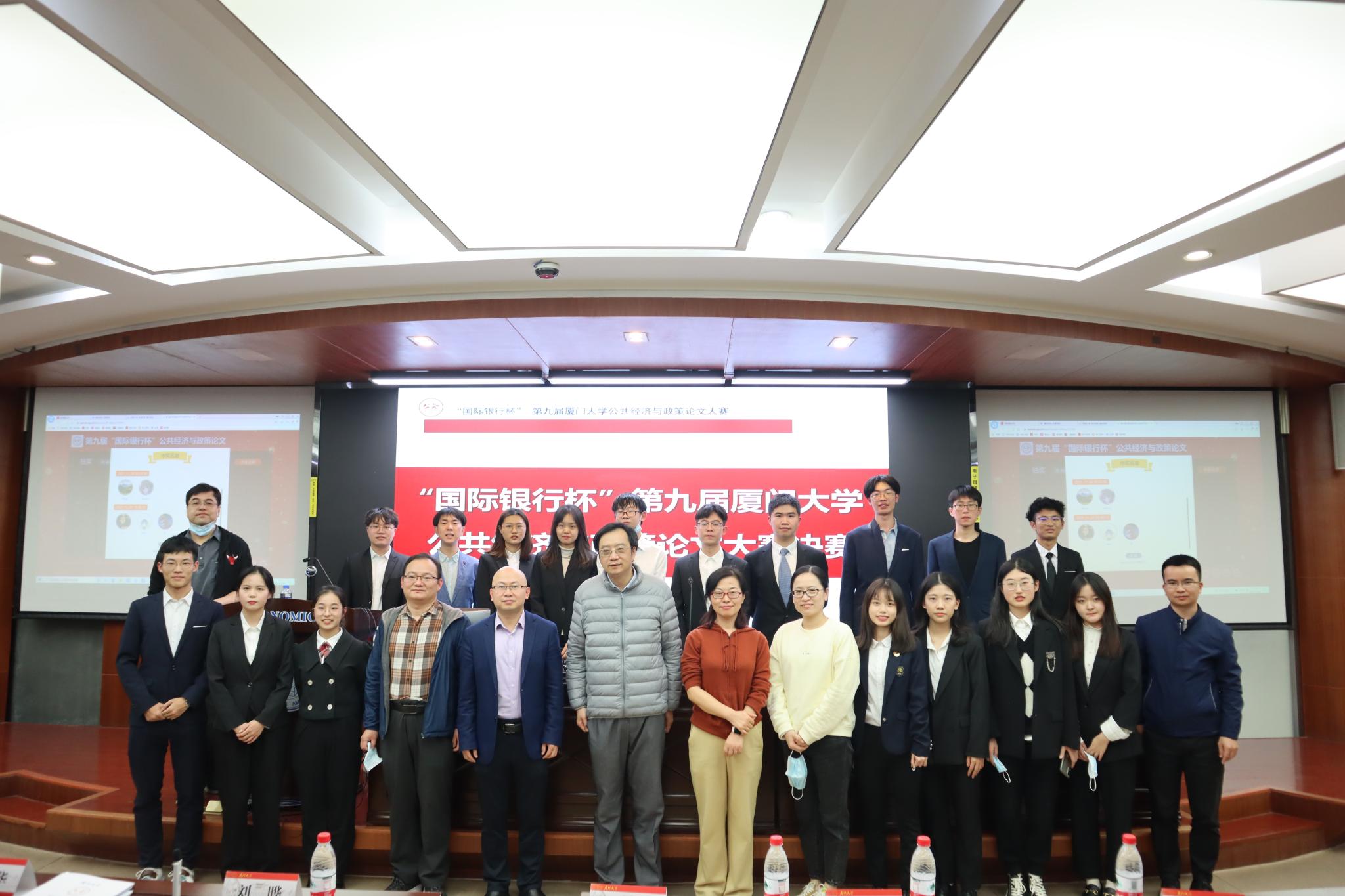 11月26日晚,“国际银行杯”第九届厦门大学公共经济与政策论文大赛决赛在经济学院N302顺利举行。大赛由厦门大学教务处、共青团厦门大学委员会、厦门大学经济学院主办,厦门大学经济学院财政系、共青团厦门大学经济学院委员会、厦门大学经济学院科创中心承办,厦门国际银行赞助支持。经济学院党委副书记周蕾出席了决赛,经济学院财政系刘晔教授、梁若冰教授、魏志华教授、冯俊诚助理教授、丁锦秀助理教授应邀担任决赛评委。