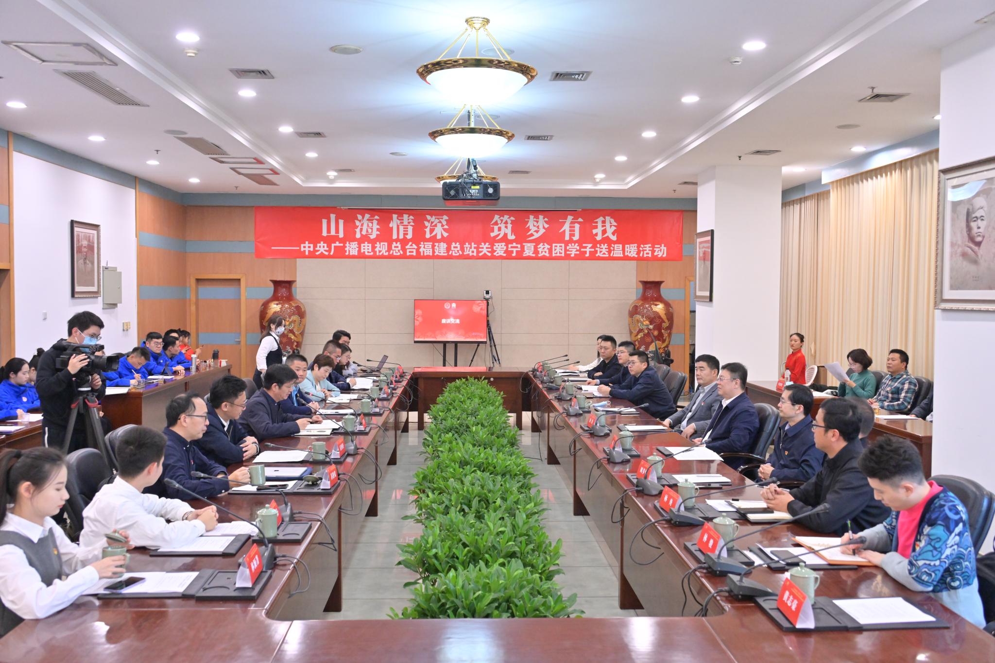 2月13日下午,中央广播电视总台福建总站关爱宁夏贫困学子送温暖活动在颂恩楼215会议室举办。中央广播电视总台福建总站党委书记刘涛,党委副书记洪波、公海泉、周步恒,我校党委副书记徐进功出席会议。